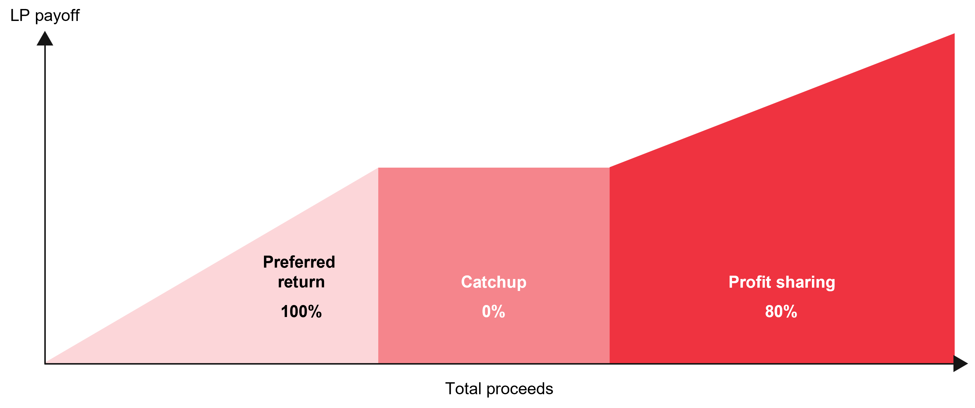 Illustration of LP payoff given a 100% catchup (after management fee and return of invested capital)