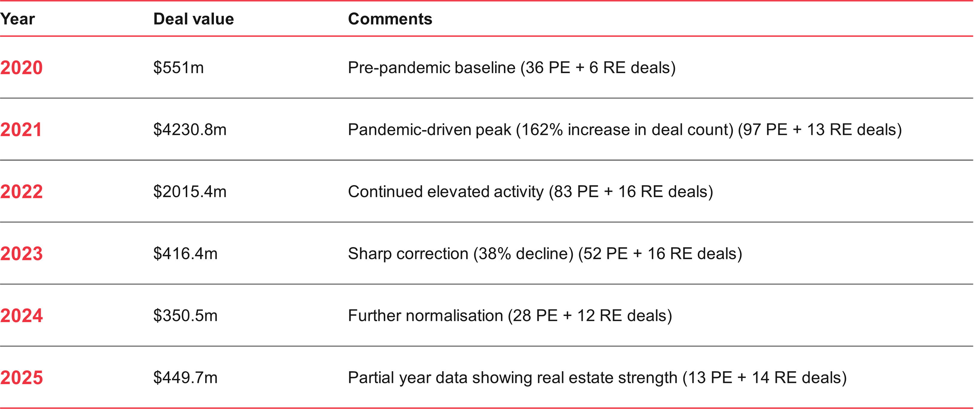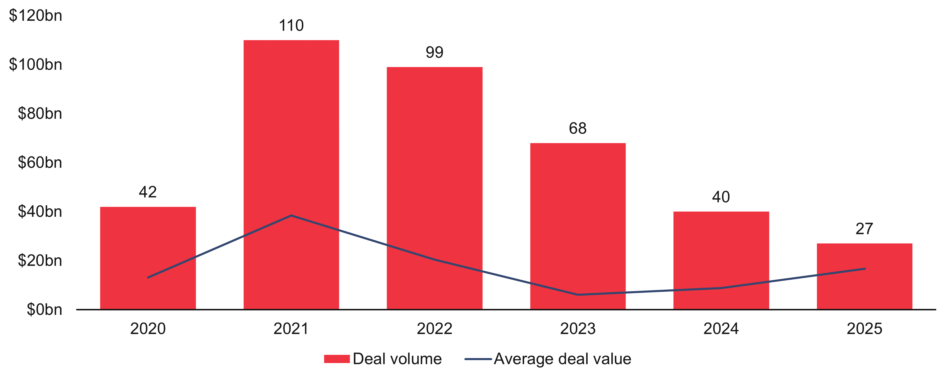 Figure 2: Deal volume and value, 2020-2025